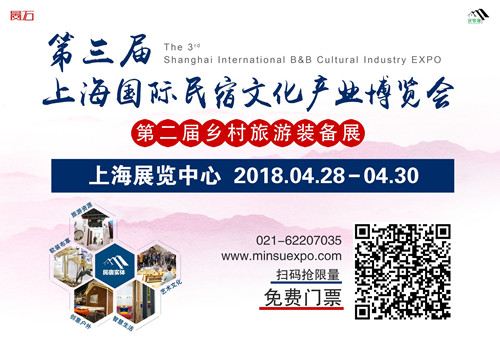 2018年第三届上海国际民宿文化产业博览会暨乡村旅游装备展(简称:“第三届上海国际民宿展”)将于04月28-30日在上海展览中心举办。