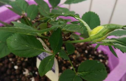 月季花浇水宜干湿适中,把握“不干不浇,浇则浇透”的原则。盆土过湿会造成烂根,发生植株黄叶,甚至死亡。所以应结合自己盆栽用土的保水性决定浇水的频率。
