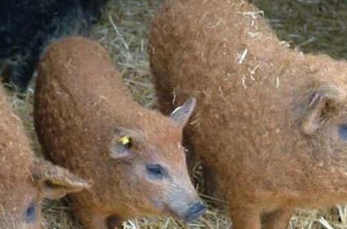 林肯郡卷毛猪跟羊一样,它每年剪一次毛,剪掉的毛可做成猪毛衫。