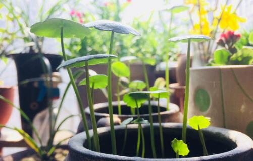6、生长旺盛的铜钱草,一个月时间就能蔓延满水盆,所以我们应该适当地为它进行剪枝分株,把过于稠密的铜钱草移植到其它水盆中,以免成叶遮蔽了嫩叶的光照,影响正常的植株生成代谢。