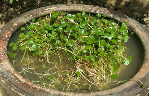 施撒肥料:铜钱草对肥料的需求量较多,生长旺盛阶段铜钱草每隔2~3周追肥一次。如种于盆栽或容器中,则需少量施肥,如速效肥花宝二号,能在水中维持较长时间的肥效,保证或水质呈微酸性或中性即可。