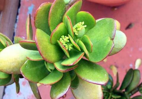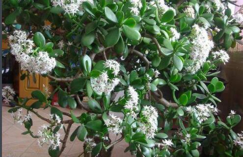 (4)保持玉树生长期水肥适度,冬季室内光照充足,空气清新,温度平稳,冬春季健壮老株能开出粉白色小花,并有香气。