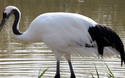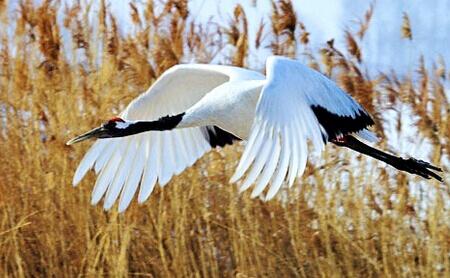 丹顶鹤性情高雅,形态美丽,素以喙、颈、腿“三长”著称,直立时可达一米多高,看起来仙风道骨,被称为“一品鸟”,地位仅次于凤凰。除此之外,鹤在中国的文化中占着很重要的地位,它跟仙道和人的精神品格有密切的关系。