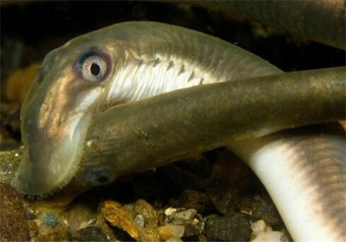 2、海八目鳗:海八目鳗产自于大西洋,除了用口盘造巢外还吸附在更大的鱼类身上,然后用舌头在其它鱼身上挖洞并吸它的血,会一直寄生在这条鱼上生活大约两年,随后它迁移到溪流中完成产卵。