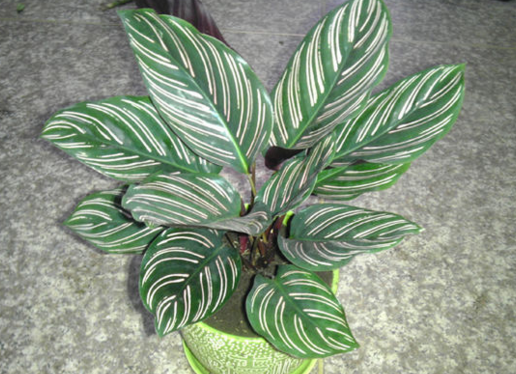 3、日照:肖竹芋宜摆放在光线明亮,无直射光处养护。忌烈日曝晒,否则会因光线过强使叶片卷缩,变黄,甚至叶面产生焦斑,严重地影响生长和观赏。