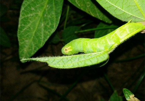 2、豆丹是在天然无毒、无公害状态生长的昆虫,与蚕相似,成虫时长约5公分,嫩绿色,头部色较深,尾部有尾角,从腹部第一节起两侧有七对白色线,成熟之后会钻入地下蛰伏,待来年羽化成成虫。