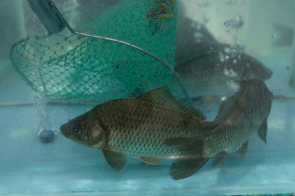 2、在饵料的选择上,可以使用一些全颗粒的饵料,而且还要注意找专人,每天在正确的时间当中,进行定点定时的投喂,每次在投喂的时候,都要注意合适的量。