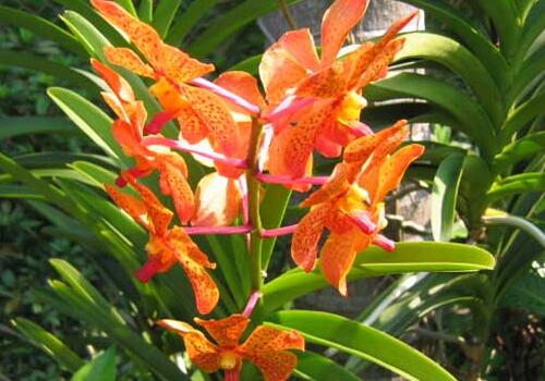万代兰怕冷不怕热,怕涝不怕旱,即使是夏天35度的高温对它的生长也影响不大,而且在栽培时不必用许多植料,泰国许多花场对种植万代兰都非常粗放,他们常用木条钉成一个个四方形的小框,里面放入几粒木炭、碎砖或椰衣,就可以延续生长,甚至有的只用一条尼龙绳子把它的植株吊缚起来,挂在兰棚或树下,经常给它洒水和喷肥也能长叶开花,所以养殖万代兰不用费太多心思。