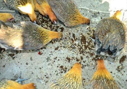 饲养的方法一般是采用圈养和放养结合的方式,这样有益于虫子鸡的身心健康,饲养是需要分为三个阶段进行的,雏鸡基本上采用圈养的方式,一天投喂数次,每次的分量不用太多,主要是用将虫子晒干之后打成粉末适量的加入一些青菜和牧草之类的进行喂养,等到雏鸡慢慢的长大,就可以直接投放虫子不需要将其打碎了,成年的虫子鸡我们就可以施行半放养的模式,让它们自己寻找食物,同时不定时的投放虫子、青菜以及加工的虫子饲料,进入蛋期的虫子鸡一般就需要控制它的食量了,不然会影响产蛋率,通常是在原来投喂的基础上减少百分之八的量,等到生产的时候再慢慢的调整回来。