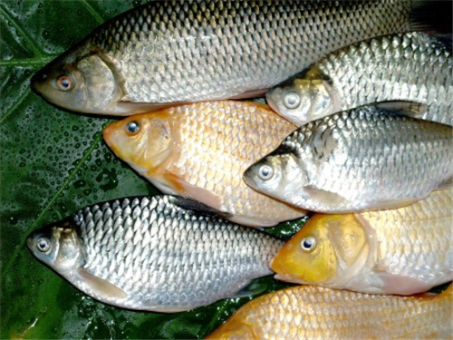 3、鲫鱼是杂食性鱼,一般以植物性食料为主,比如鲜嫩水草、小虾、蚯蚓、昆虫、幼螺等都可食用,所以很好饲养,当然也可用玉米、豆饼等混合成饲料饲喂。
