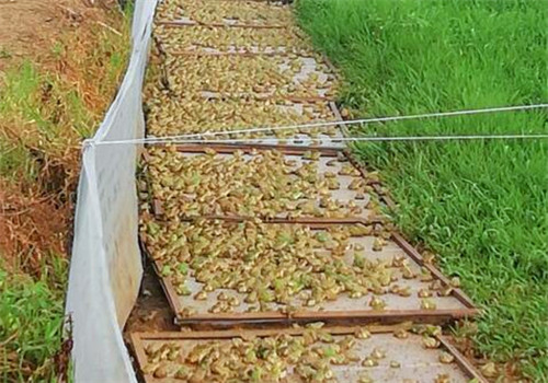 精养池外面的围网主要是为了防范黑斑蛙逃逸,因其野性难驯擅长跳跃要经常检查围网是否有破洞或小孔,及时缝补堵塞。