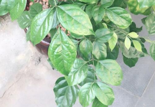 (1)在温度太高、湿度大、通风不好的环境中,幸福树叶片易感染叶斑病,加强通风透光,喷洒50%的多菌灵可湿性粉剂600倍液,15天喷洒一次。
