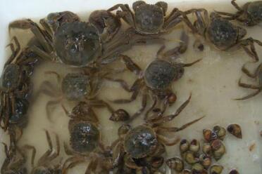 2、坚持早晚巡查塘口,早晨主要是检查池中有无残饵,以便安排当天的投饵量,并清扫食场,将残饵捞去,创造一个清洁的摄食环境,同时观察池水水质情况,决定是否需要换水或对池水进行改良。晚上巡查主要是观察河蟹的活动、吃食及生长情况,发现问题及时调整饲养管理措施。