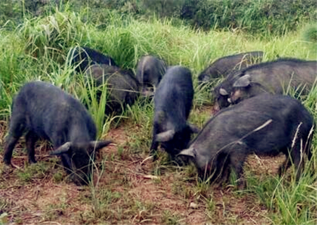香猪个体小,饲养密度相对其他猪种可以适当大些,仔猪10平米的栏舍可饲养10头左右,大猪以10平米栏舍饲养5头合适。密度过大会加剧抢食和争斗,影响采食、活动和睡眠,密度过小浪费饲养空间。此外,香猪的性成熟期较早,要提前做好根据性别分群的准备。