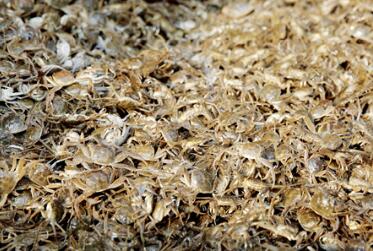 8、蟹苗胃里有饵,但不多;蟹苗过秤时无残饵杂质和死苗,苗在网箱应沥水后过秤。