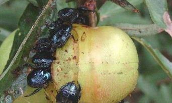 金龟子有群集性、假死性、趋光性,闷热无风的夜晚危害最为明显。利用它们的趋光性,有条件的果园可安装黑光灯或60W灯泡,诱杀效果显著。用黑绿单管双光灯,对金龟子的诱杀时比黑光灯可提高10%左右;也可利用它们的假死性,在早上或者傍晚摇动树枝,把金龟子震落在树盘底下,用背负式喷雾器对准呈假死状态的金龟子进行喷药灭杀。利用成虫入土栖息的习性,在成虫发生期内在地面撒施药剂,可以用48%毒死蜱乳油300~500倍,或者50%辛硫磷乳油300~到500倍喷洒地面,将土壤表层喷湿,可有效将其杀灭。