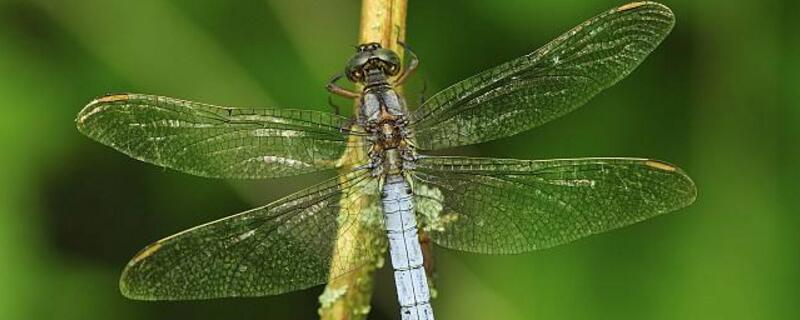 蜻蜓一般在6-11月出现,在夏季更为集中。蜻蜓一般体型较大,翅长而窄,膜质,网状翅脉极为清晰。视觉极为灵敏,单眼3个;触角1对,细而较短;咀嚼式口器。腹部细长、扁形或呈圆筒形,末端有肛附器。足细而弱,上有钩刺,可在空中飞行时捕捉害虫。