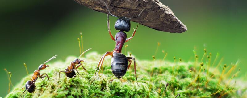 蚂蚁具有很强的社会性,其群体种类一般分为蚁后、繁殖蚁、工蚁和蚁,每种蚂蚁的分工十分明确,如工蚁的主要职责就是建造和扩大巢穴、采集食物、伺喂幼虫及蚁后等;兵蚁则是在保卫蚁群时成为战斗的武器,也在蚁群中充当储存粮食的工具。