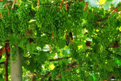 葡萄对钾的需要量较高,每生产100千克葡萄浆果吸收的钾素量为0.3~0.65千克,有“钾质果树之称”。在其生长发育过程中对钾的需求和吸收显著超过其他各种果树,若使葡萄产量和品质提高,需增大磷、钾肥的供应比例,生产上必须重视葡萄这一需肥特点,要始终保持钾的充分供应。钾素能促进葡萄的成熟和着色,提高糖分含量及耐贮性能,增加葡萄的抗旱、抗寒能力。