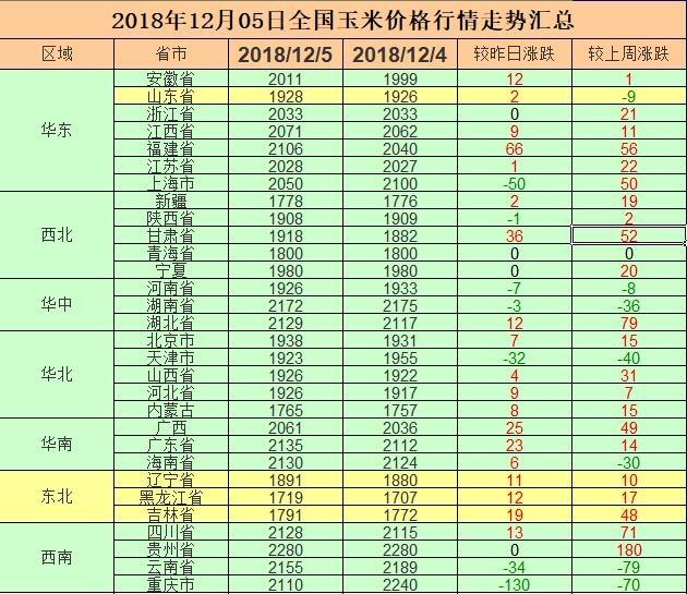 玉米市场经过近几年的市场调控,下跌的风险已经基本排除。国内玉米库存的压力基本已经完全释放,加上近几年玉米种植结构的调整,玉米种植面积的持续减少,我相信玉米价格上涨才刚刚开始,突破一元是基本价位,1.1元/斤才是下个玉米上涨的关口!下面是12月5号的玉米价格行情图。