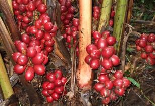 9、采摘烘干:草果在10~11月果实开始成熟,变为红褐色而未开裂时采收,晒干或微火烘干。