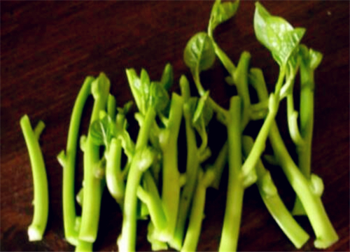 (7)木耳菜以采收嫩叶嫩梢为主,为提高嫩头品质和产量,生长期内需进行植株调整,方法是每次采收留2-3个强壮侧枝。