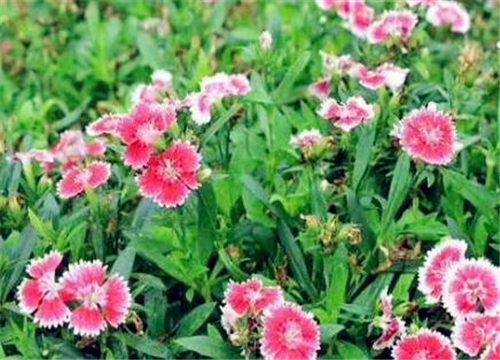 1.五彩石竹播种繁殖时间春季和秋季都可以。最好的的播种季节是秋季9-10月露地播种。发芽适温10-20℃。五彩石竹苗需要一个半月的低温春化作用才可分化出花芽,所以春季播种当年不开花,只长叶片,需到次年初夏才可开花。在下霜前小苗长2-3cm为宜。