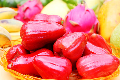 大叶红莲雾原产只马来西亚,外表颜色艳丽,色呈大红,靠近果实闻之有一股清香,咬上一口后带着一股清爽透凉的感觉,有解渴、降火,在高温天气食用最宜。