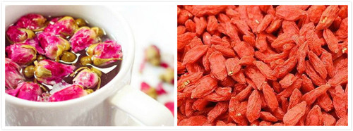 4.玫瑰花茶+益母草+枸杞=调整内分泌失调,抑止痘痘生长