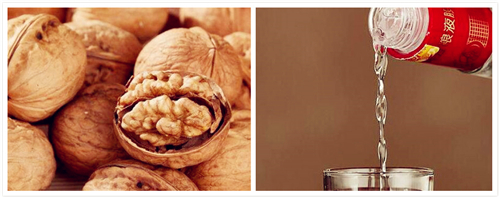 4.核桃和酒不能一起吃,酒是比较热又辣的食物,核桃是温性的,一起吃的会导致血热,严重的会出现喉咙大出血,特别是支气管不好的朋友一定要注意。
