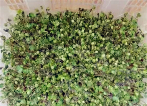 注意:自己种的萝卜苗可能不如市场上买的那么大,其原因是我们没有用叶面肥,叶面肥里有植物激素对人体有害。所以,不用叶面肥的芽菜口感更好。