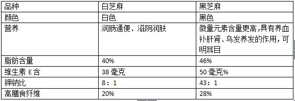三、白芝麻与黑芝麻的营养区别有哪些?