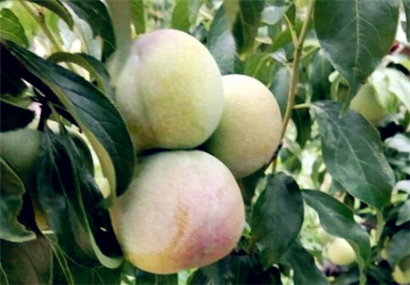 3、该品种适应性强,抗寒、抗病、结果早、丰产、稳产树势中庸,树姿自然开张,自花结果,坐果率高,二年生枝易形成花束状,掖花芽可结果,该品种8月中旬成熟。