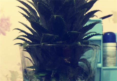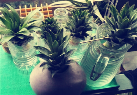 3、待到根须足够长,而且菠萝长势旺盛的时候,将其移栽到花盆中,一个漂亮的盆景就诞生了。看来,菠萝头真的可以在水中栽培成功。