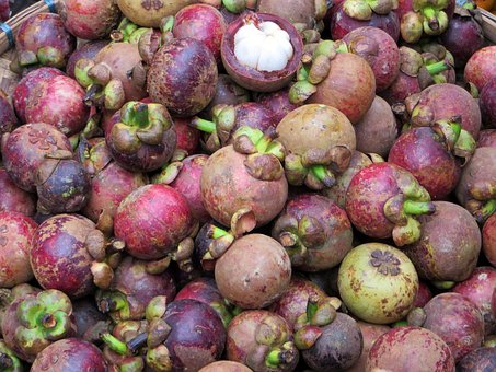 印度山竹果呈圆形,个儿比网球略小,皮既硬又厚,多呈现出紫红色。我们看果皮拱起来的部分有几瓣,便知道里面的果肉有几瓣,用刀剖开果皮便会露出雪白的果肉。