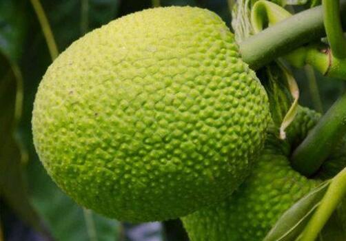 面包果其实就是面包树的果实,现在在我国海南等热带省份有一定的种植面积,面包果果如其名,将其烤熟后有一股面包的味道,并且能够充分的解决饥饿的问题,面包果含有丰富的蛋白质及各种矿物质,而且面包树的树形非常优美,还有着极高的观赏价值,其种植前景还是非常不错的。