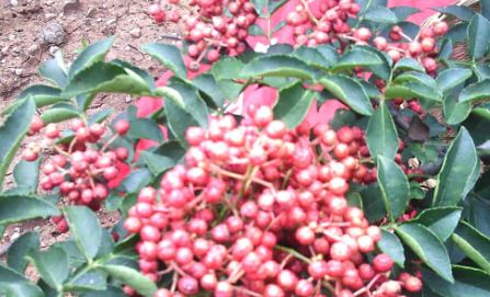 花椒树结果的时期一般在立秋前后,如果花椒已经成熟的话是呈现淡红色或者紫红色,中间会突出来,有的还会裂开,有一股浓郁的味道。