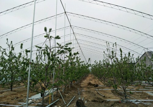 大棚的类型有三种,即一斜一立式、半圆拱式、半圆形棚架结构,坐北向南,东西走向;如果是种的小树苗,可以在栽种树苗后的第3年的1月下至2月上建造,如果是移栽的3年生以上的结果树,可以在春季1-2月或是秋季10月之前建好大棚,然后移栽树种。