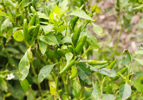 3.在朝天椒开花期亩用尿素10公斤,有条件的施用叶面宝、丰产灵等植物活力素。另外要注意疫病、绵腐病等,可以喷施或浇灌50%甲霜酮可湿性粉剂800倍液,或64%杀毒矾可湿性粉剂500倍液防治。当然不同的情况使用的药剂和用量都是不一样的,所以要根据实际情况来确定。