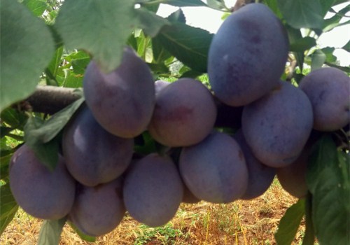 3、巨早西梅李:一般在7月上中旬成熟,果实长圆形,果皮紫黑色,果粉厚、果肉黄色,可溶性固形物14%-16%,香味较浓,硬质、耐贮运,早果丰产。