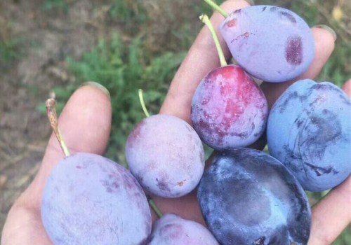 5、红西梅李:一般在8月下旬成熟,单果重60-100克,果实卵圆形,果皮深紫兰色,肉乳黄色,硬脆,甜酸可口,可溶性固形物达20%以上,核小,品质好,耐贮运,早果结的多,南北方都可栽培。