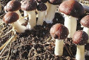 成熟的大球盖菇要求菌盖外一层菌膜刚破裂,菌盖内卷不开伞。采菇时用左手压住物料,右手指抓住菌脚轻轻转动,再向上拔起,除去带土菌脚即可上市鲜销,也可冷冻保鲜出口或脱水烘干成干菇。第一潮菇收完后,应补充足够水分,经10~12天,又开始出第二潮菇,可连续培养2~4潮菇。