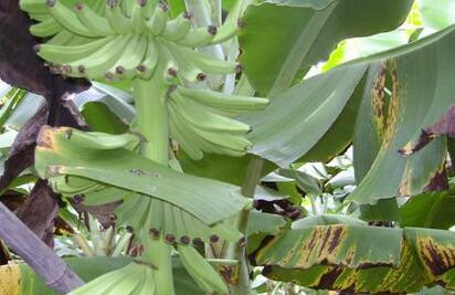 香蕉茎叶庞大、生长迅速、生长量大、产量高,决定了其需肥量大的特点。香蕉根系发达但分布浅,对肥料特别敏感。氮肥可促进香蕉早开花,增产效果显著;钾肥是合成假茎、叶纤维的必需成分。香蕉需钾肥最多,氮肥次之,磷肥最少,氮、磷、钾比例为4:1:14。秆高的品种,钾氮比偏低;秆矮的品种,钾氮比偏高;前期钾氮比低,后期钾氮比高。镁、硼等中微量元素可增强香蕉的光合作用、加速香蕉体内碳水化合物的转化和积累,提高香蕉的产量和品质。硅、钙等矿质元素不仅可使香蕉的表皮细胞壁加厚,角质层增加,增强香蕉茎叶的坚韧性,使有害病菌难以侵入,从而提高香蕉对黄叶和叶斑病、黑星病、炭疽病、束顶病等病虫害的抗性。