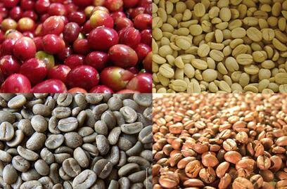 咖啡豆果皮开始变红即可采收。采果期因种类而异,小粒种9-11月采,9-10月为盛果期;中粒种11月至次年6月采,2-4月为盛果期。加工方法有两种: