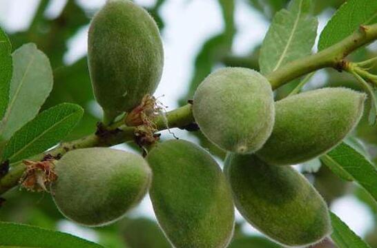 扁桃树果实卵圆形,薄而少汁。扁桃是新疆维吾尔人民最珍视的干果。果子甜美,香味浓郁,营养丰富,为亚热带名果。扁桃具有抗干旱、耐瘠薄、质优丰产、经济价值高等特点,是我国北方干旱、半干旱地区的理想树种。