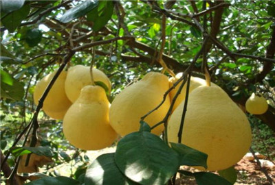 4.桂林沙田柚:桂林沙田柚引种于容县沙田柚,肉质嫩软,清甜幽香,富有营养,维生素C比苹果还多出二十倍以上,柚果呈梨形或心脏形,成熟后呈鲜黄色,一般每个重2斤,其最大特征是蒂部像一截颈子,底部有金钱状的印环,人称“金钱圈”。