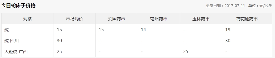 目前现市场统货蛇床子价格在15元/公斤左右,净货价格在18元/公斤左右。具体价格如下:
