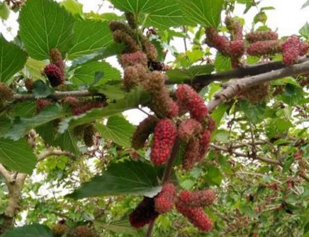 桑葚既可以吃鲜食,还可以入药,在中医认为桑葚子性微寒,味甘酸、入心、肝、肾经、为养心益智,滋补强壮的佳果。桑葚子具有生津止渴,补血滋阴,润肠燥等功效,主治因阴血不足所引起的耳鸣心悸,头晕目眩、腰膝酸软,烦躁失眠,须发早白、大便干结,消渴口干等症。桑椹子含有丰富的蛋白质,多种人体必需的氨基酸、钙、铁、锌等多种矿物元素。
