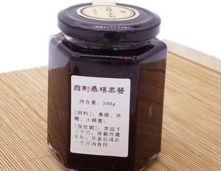 3.桑椹膏:新鲜桑椹1000克,蜂蜜300克,桑椹搅汁,煎熬成稀膏,加蜂蜜一同熬至稠厚,待冷服用。