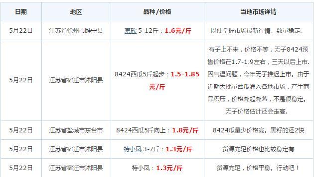 比如,备受采购商欢迎的8424西瓜,近期在主产区的价格不但没有下跌,反而是在上涨;还有根据农业百事通的调查,广西是早熟西瓜黑美人的重要产地,在销区陕西据当地水果零售商的说法,最近西瓜的购入价是一天一变,今天是2.6元/斤,明天就2.8元/斤,到了后天就是3.0元/斤,总而言之,就是不停地在持续上涨中;